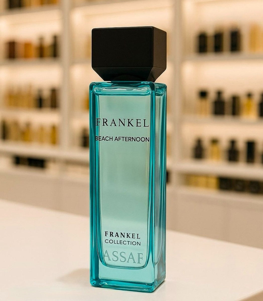 "Frankel Beach Afternoon" is a perfume by Assaf that offers a refreshing, relaxing scent with citrus, light fruits, marine floral notes, and a base of musk and light woods, evoking the feeling of a sunny beach breeze. The fragrance features top notes of citrus and bergamot, a heart of dry amber and jasmine, and a base of sandalwood and musk, creating a fresh and sophisticated scent inspired by the calmness and elegance of the sea. It is designed for both everyday wear and special occasions.